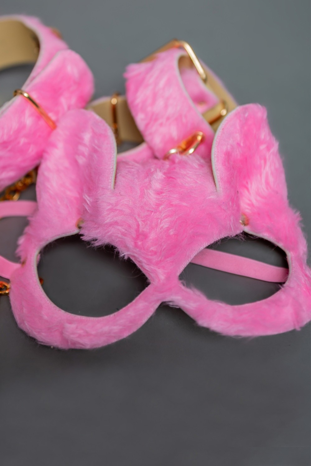 Liberte o seu lado lúdico com a nossa máscara de gato rosa com pele decorativa – um acessório dinâmico que acrescenta um toque de capricho a qualquer conjunto! Feita com cuidado, esta máscara não é apenas um acessório; é uma declaração de individualidade e diversão. O tom rosa vibrante e a pele decorativa tornam-no perfeito para adicionar um toque de personalidade ao seu visual.