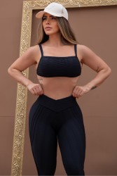 Conjuntinho fitness brocado em tom pretocomposto por top de alças finas no ombro e uma tira fina também nas costas, conferindo mais charme ao look e frescor com as costas livres. A legging é de cós alto e COM EMPINA BUMBUM, que ressalta as curvas do corpo, além de costuras desenhadas que dão mais graça ao look.