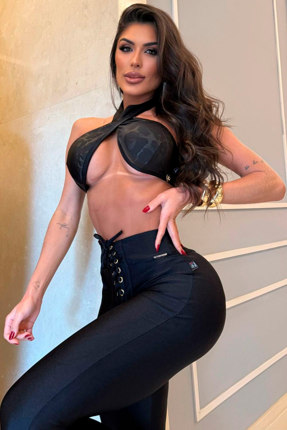 Conjunto fashion composto por top estilo torcido com recorte frontal ultra sensual e calça skinny de cintura alta com amarração em ilhós. Produzido em tecido com brilho sutil, modela o corpo com atitude e ousadia. Ideal para eventos noturnos, festas ou looks de impacto.