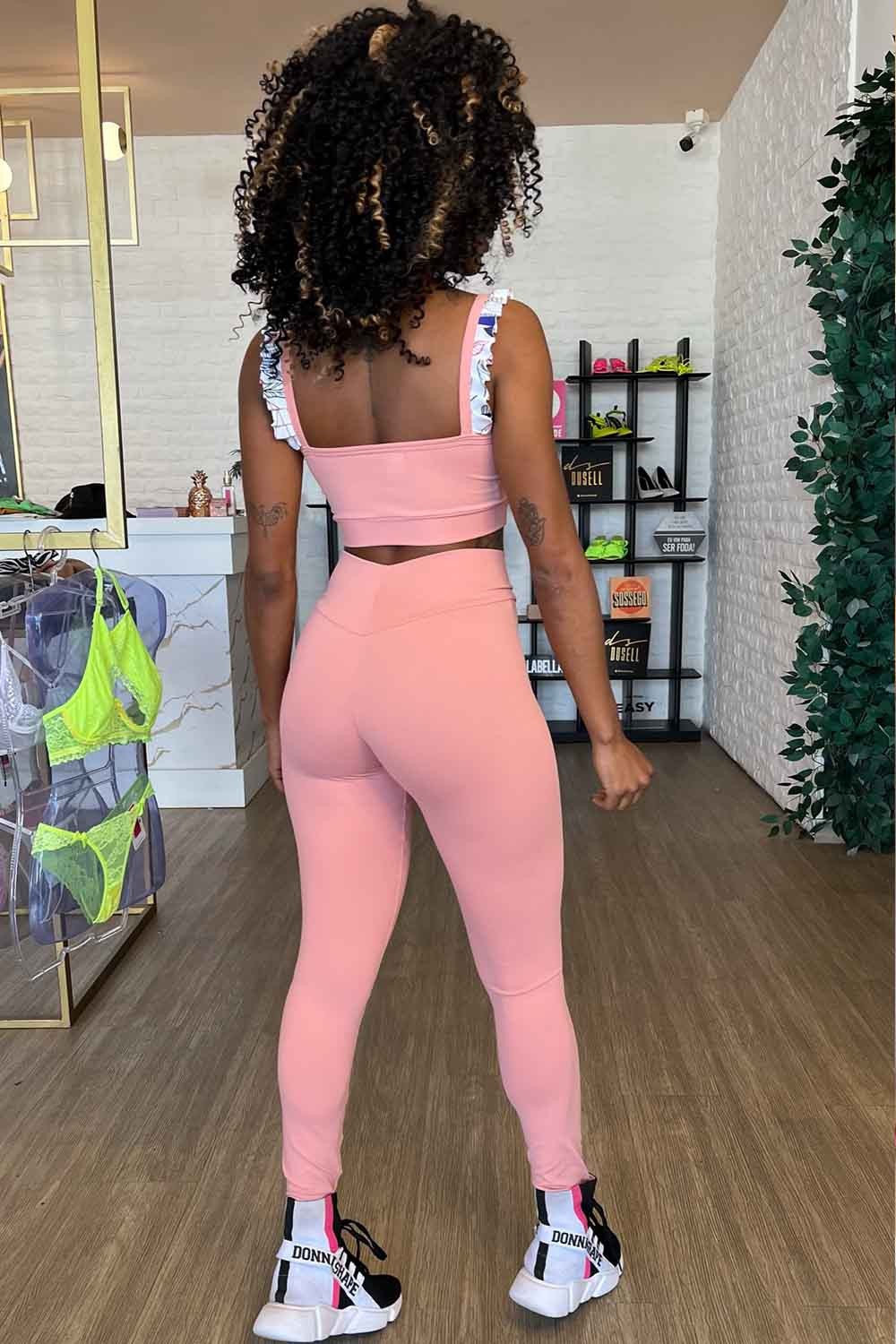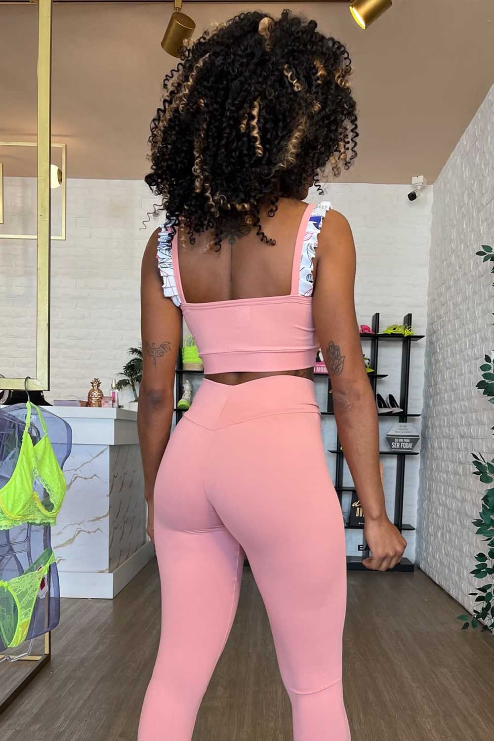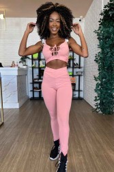 Características: Conjunto leggings e cropped decotado com laços decorativos sobre o busto, com detalhes adicionais em branco sobre as alças. com empina bumbum