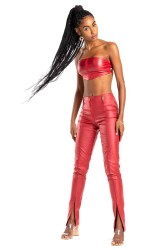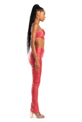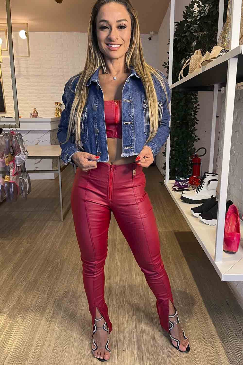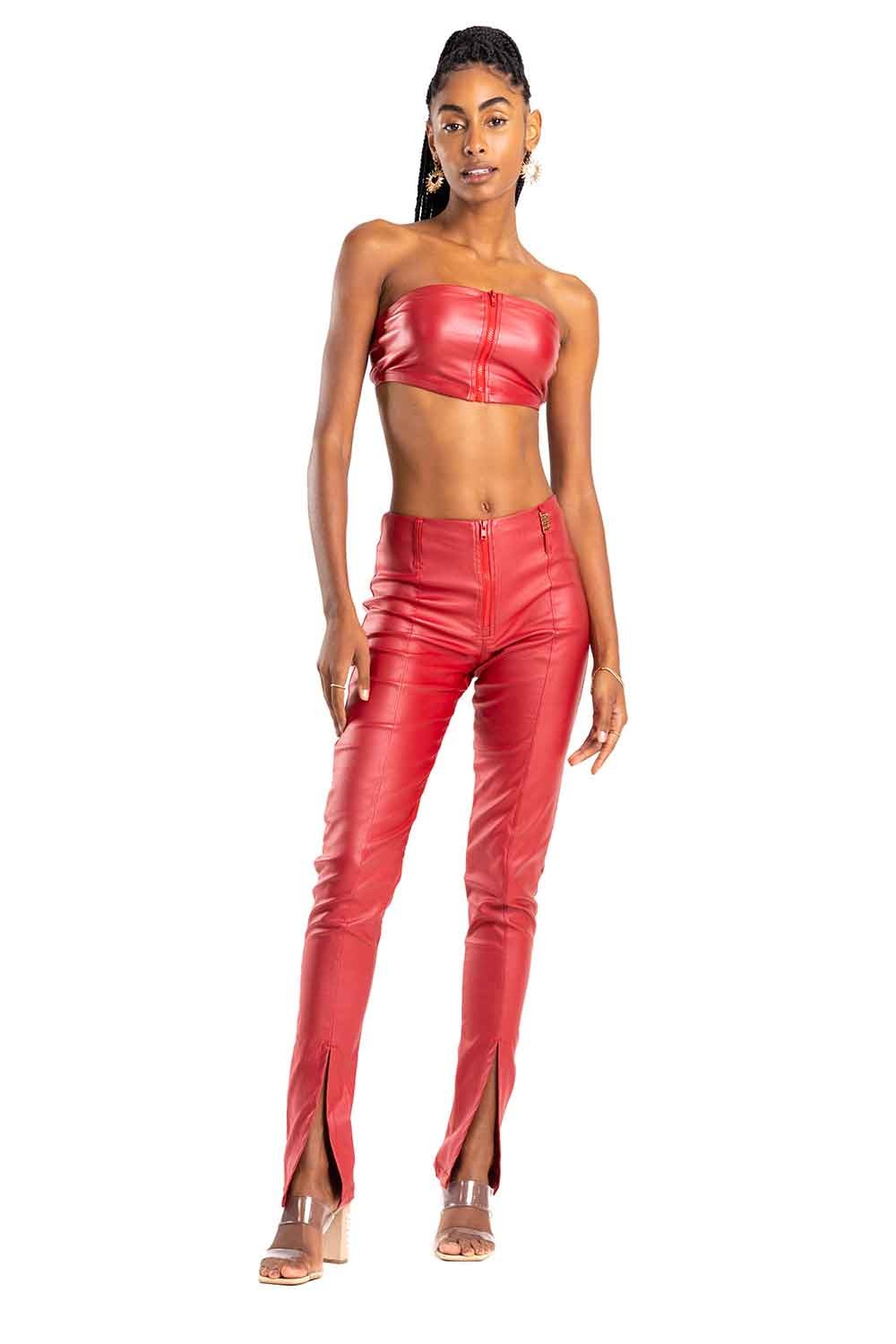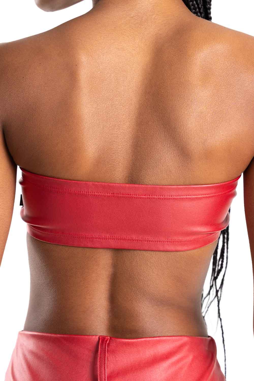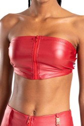 Descrição: Top sem alças feito em tecido=resinado, com ziper na frente