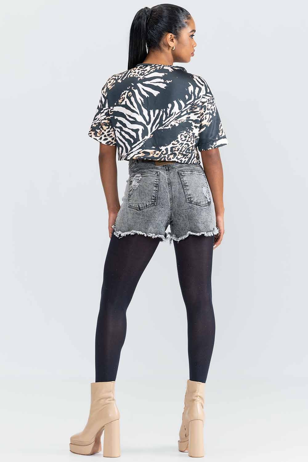 Descrição: Cropped estampado que proporciona mais conforto e liberdade de movimento para os braços. Além de um tecido leve e confortável, possui pequenas strass pretas em todo busto, dando um toque de estilo e modernidade para a peça.