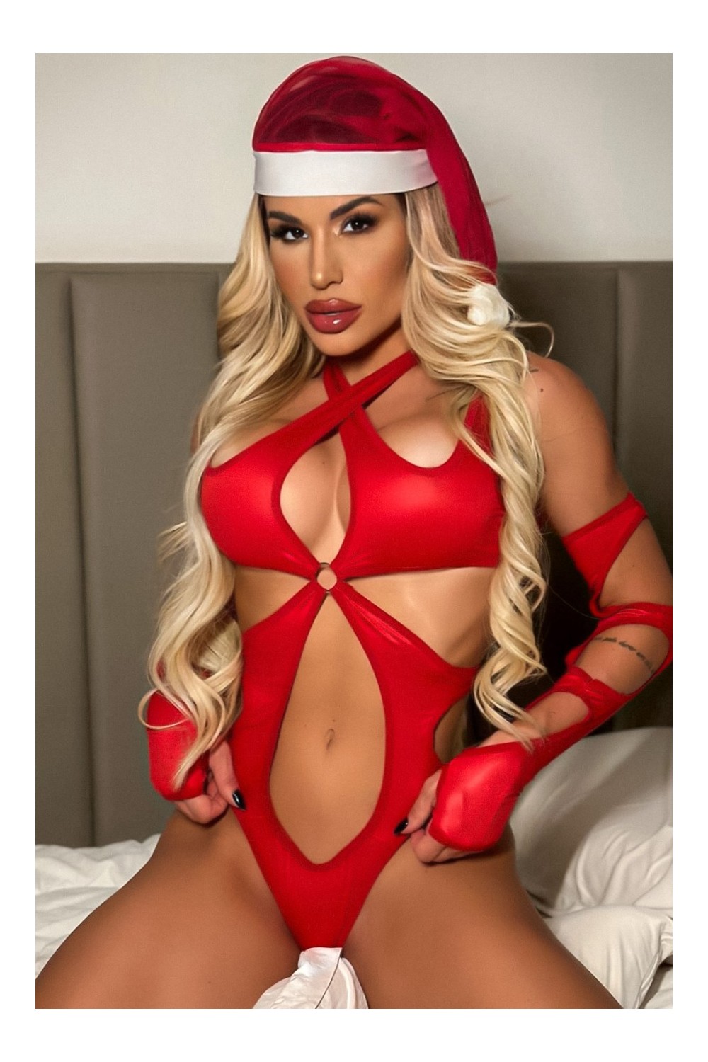 Características: Fantasia toda feita em cirre com recortes super sensuais que vestem seu corpo de forma elegante, as luvas são bem compridas com recortes na lateral do braço que as deixam mais sexy, o gorro charmoso não pode faltar para complementar essa bela peça