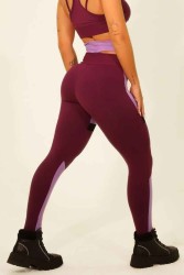 Caracteristicas: Calça legging esportiva em poliamida na cor uva com detalhes na cor lilás. Possui cós alto para valorizar ainda mais o corpo. O modelo confeccionado em materiais selecionados transforma a prática de exercícios físicos em algo prazeroso. Com modelagem perfeita para valorizar seu corpo. Legging sem empina bumbum.