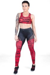 Prepare-se para chamar a atenção com estas leggings pretas com estampa gráfica vermelha na frente da peça, com o toque adicional de telas de tecido arrastão sobre as coxas, e acabamento de cirre sobre a frente do cós, garantindo que você se destaque na multidão com essa peça cheia de atitude. Legging sem empina bumbum.