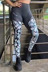 Eleve seu estilo com esta legging atlética que combina conforto e design moderno. A peça apresenta um tom cinza chumbo dominante na parte superior, estendendo-se até o meio da coxa. A seção inferior é realçada por uma estampa camuflada vibrante em tons de azul claro, branco e cinza, criando um contraste visual impactante. Detalhes perfurados sutis na parte superior da coxa adicionam um toque de respirabilidade e estilo. A modelagem de cintura alta e o tecido elástico garantem um ajuste perfeito que realça a silhueta, ideal para treinos ou para um visual casual e despojado.