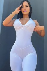 Características: Macacão na cor branca neutra com tiras nas costas unidas por uma argola, possui empina bumbum.