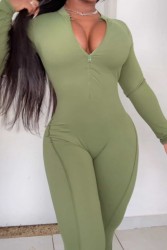 Características: Macacão fitness manga longa, com decote longo sobreposto com ziper que vai da sua gola ao meio do abdome.