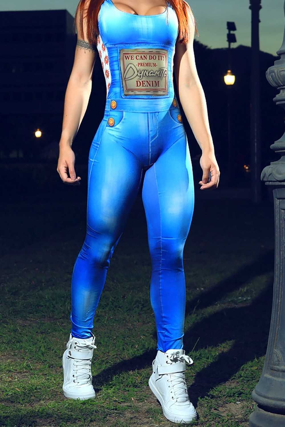 Dê um up no seu guarda-roupa fitness com o nosso Macacão We Can Do It ! Fake Jeans Dynamite ! Além de ser super moderno, ele é fabricado com um tecido que modela o corpo, realçando suas curvas e oferecendo conforto e liberdade de movimento durante os exercícios.