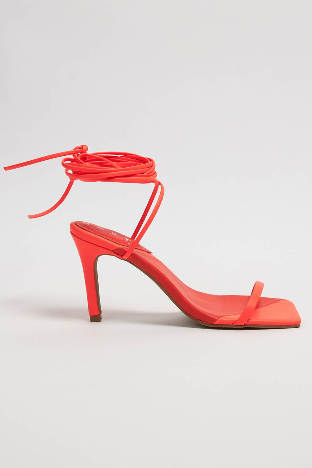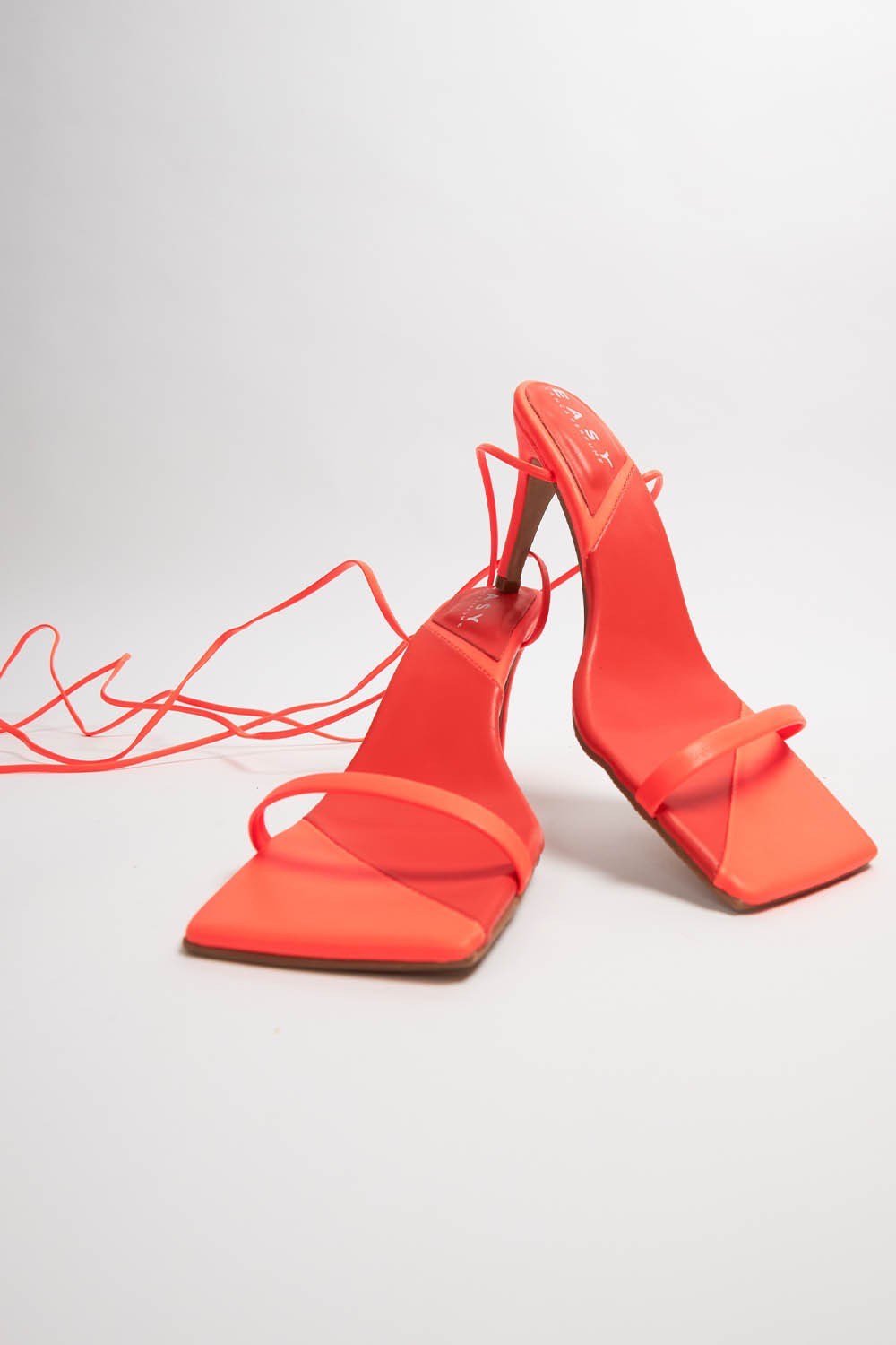 Caracteristica: Sandália de tiras com salto fino com amarração.