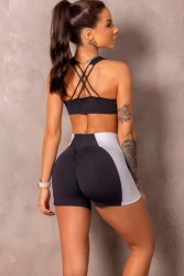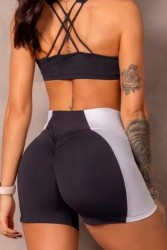 Shorts preto esportivo com modelagem empina bumbum e cintura alta que valoriza a silhueta. Confeccionado em tecido firme e confortável, possui recortes que destacam o corpo e garantem ajuste perfeito durante o treino.