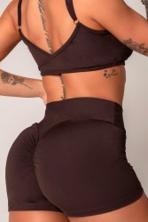 Shorts Fitness marrom com modelagem que desenha sua silhueta e traz estilo e exclusividade. Confortável, moderna e perfeita para treinos ou composições casuais.