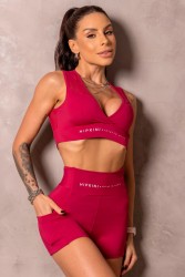Shorts fitness de cintura alta, com modelagem que realça o quadril, elasticidade confortável e bolso lateral funcional para treinos com firmeza.