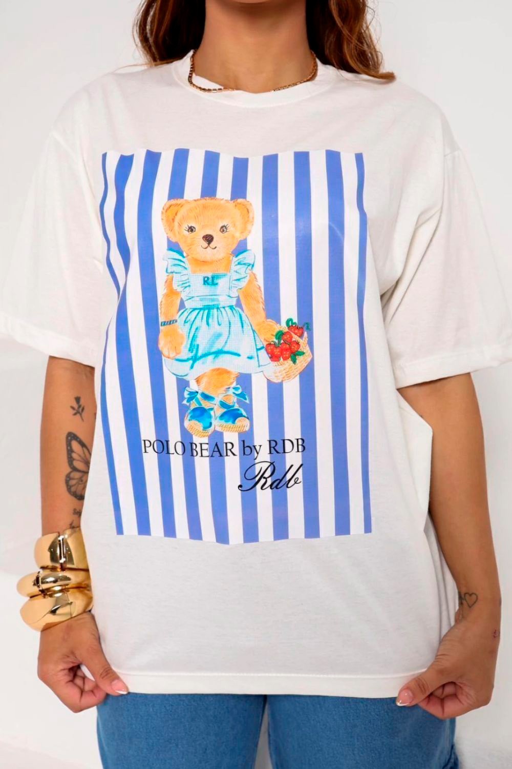 Apresentamos a T-Shirts Teddy Stripes off-white, uma peça que combina conforto e estilo divertido.