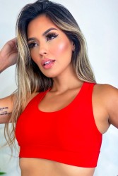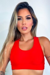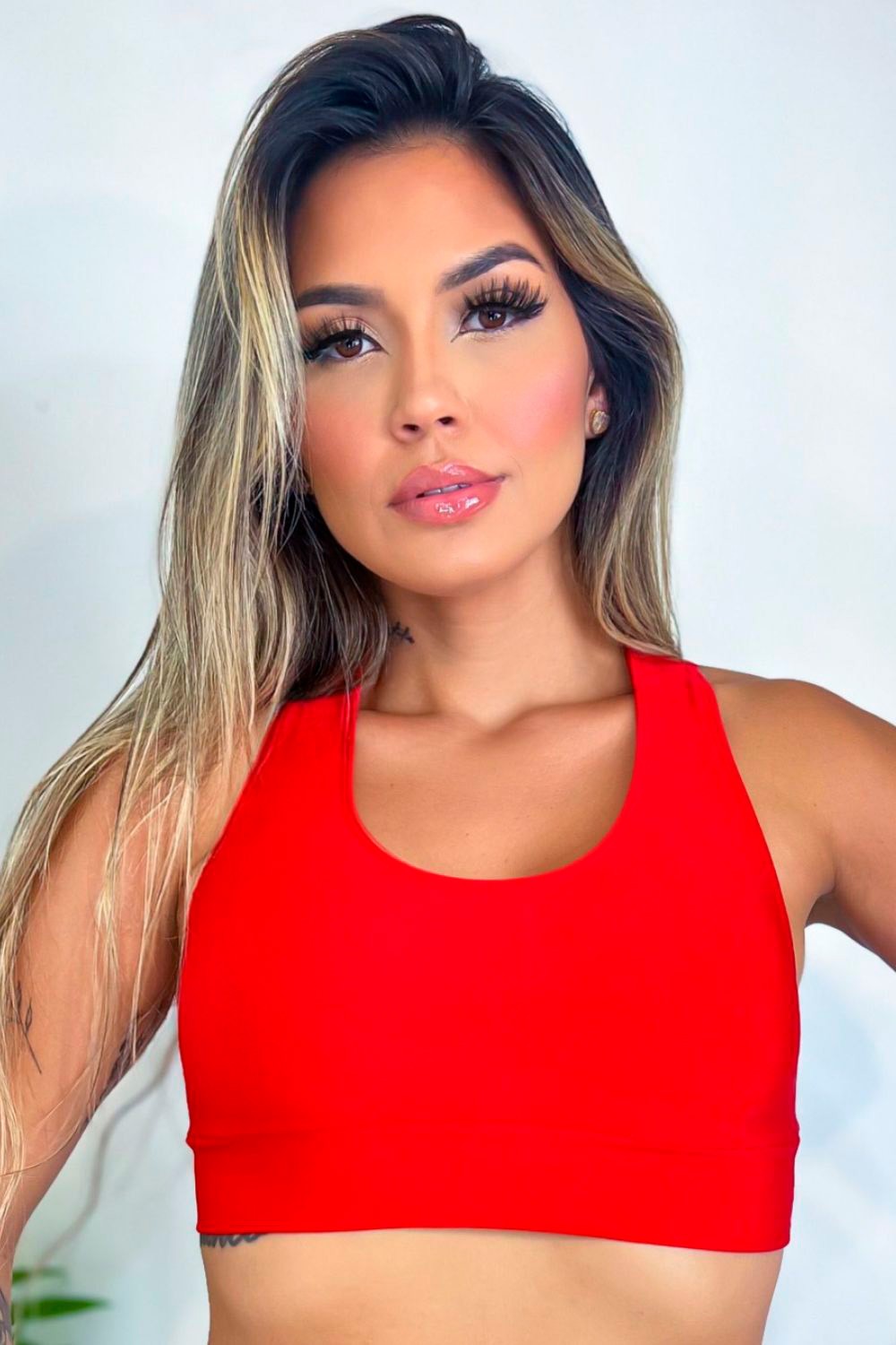 Top vermelho com alças largas, modelagem justa e tecido elástico. Confortável, versátil e ideal para treinos.