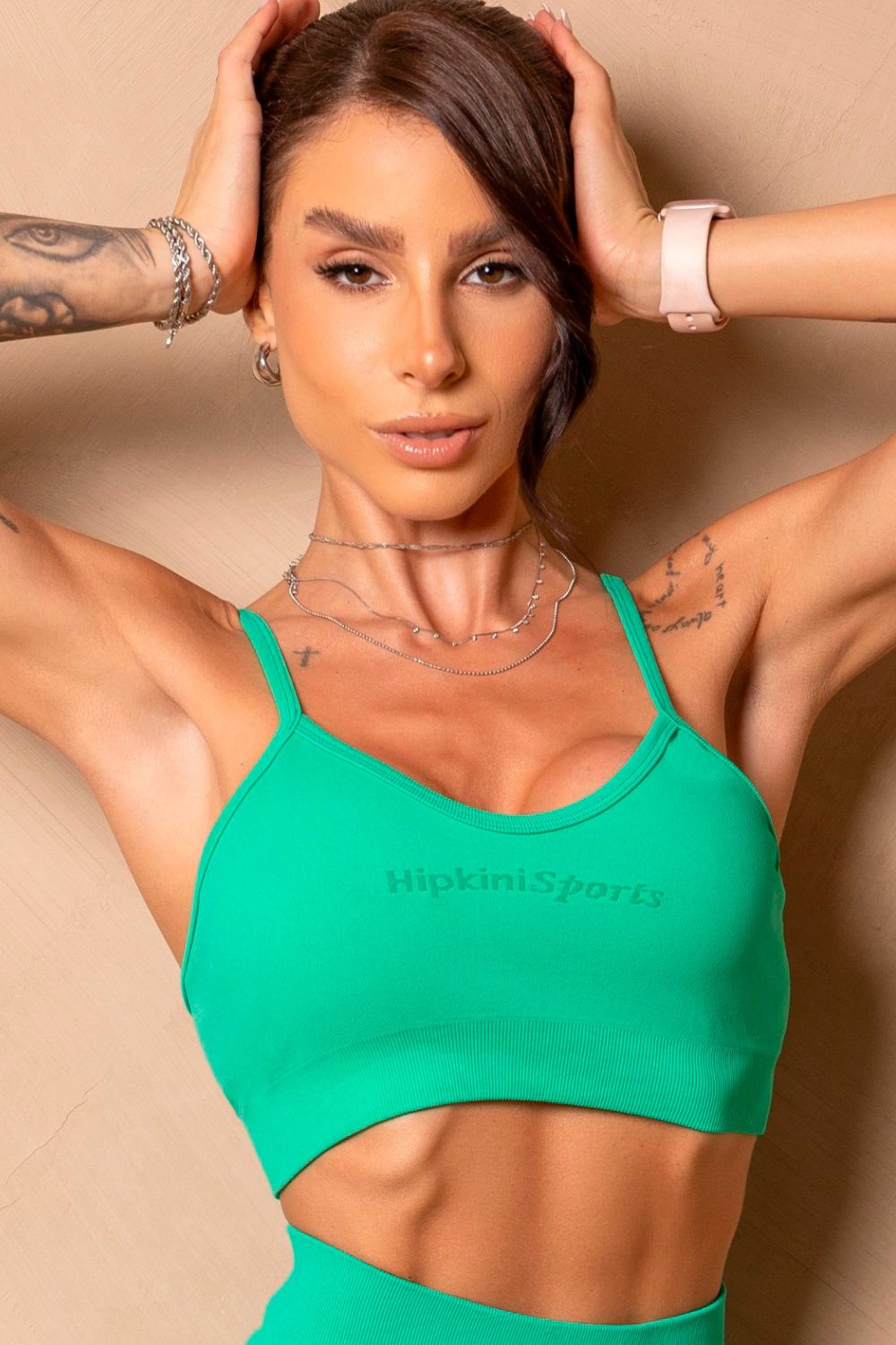 Top verde em tecido de alta compressão, com alças finas e recorte moderno que valoriza o busto. Proporciona sustentação, conforto e estilo durante os treinos.