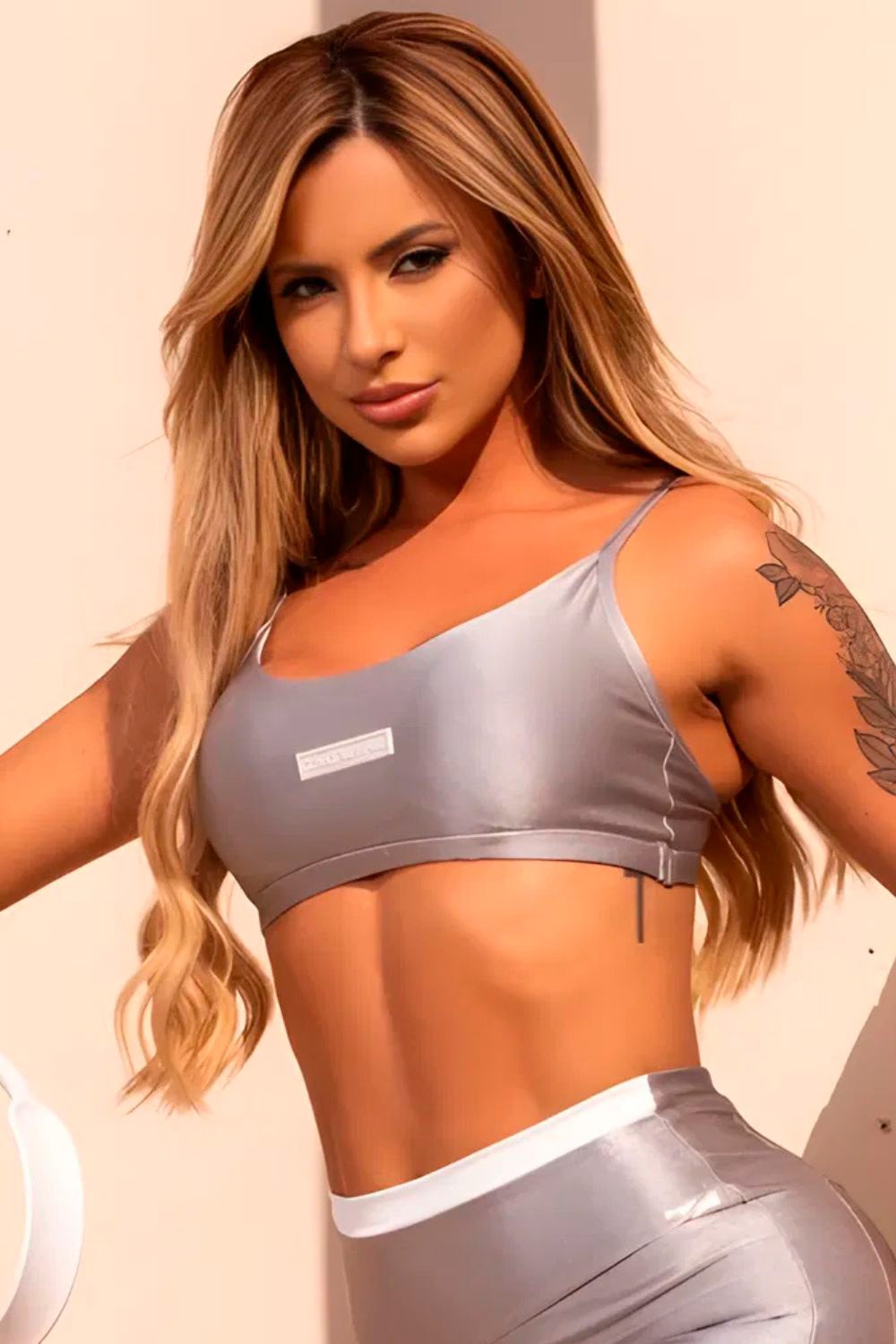 O Top Star Shine Titanium une estilo e funcionalidade. O tom prateado metálico traz sofisticação e presença. Com sustentação média e alças anatômicas, oferece conforto e firmeza sem limitar os movimentos. O tecido microcanelado acetinado garante toque macio, brilho refinado e um visual marcante.
