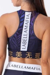 Features: Top made of printed fabric with leaf design in shades of black and purple. It has a white fabric cutout on the back with a LabellaMafia print in black Silk. Rubberized plate on the front. No bowl.
