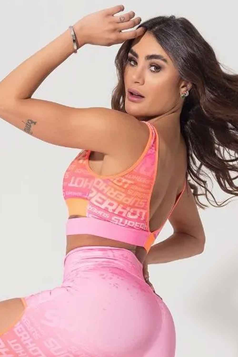 Features: Off-the-shoulder tank top and bust neckline in white tulle, U-neck and crossover waistband in neon orange and pink elastic. It does not have a bulge.