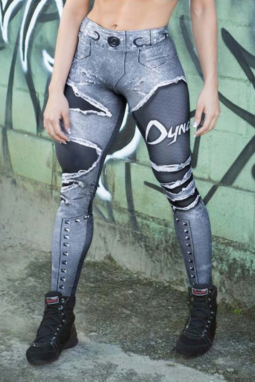 Features: Legging made in fabric that imitates destroyed jeans. It has Dyamite written on the side. Modeling adjusted to the body, valuing the curves.