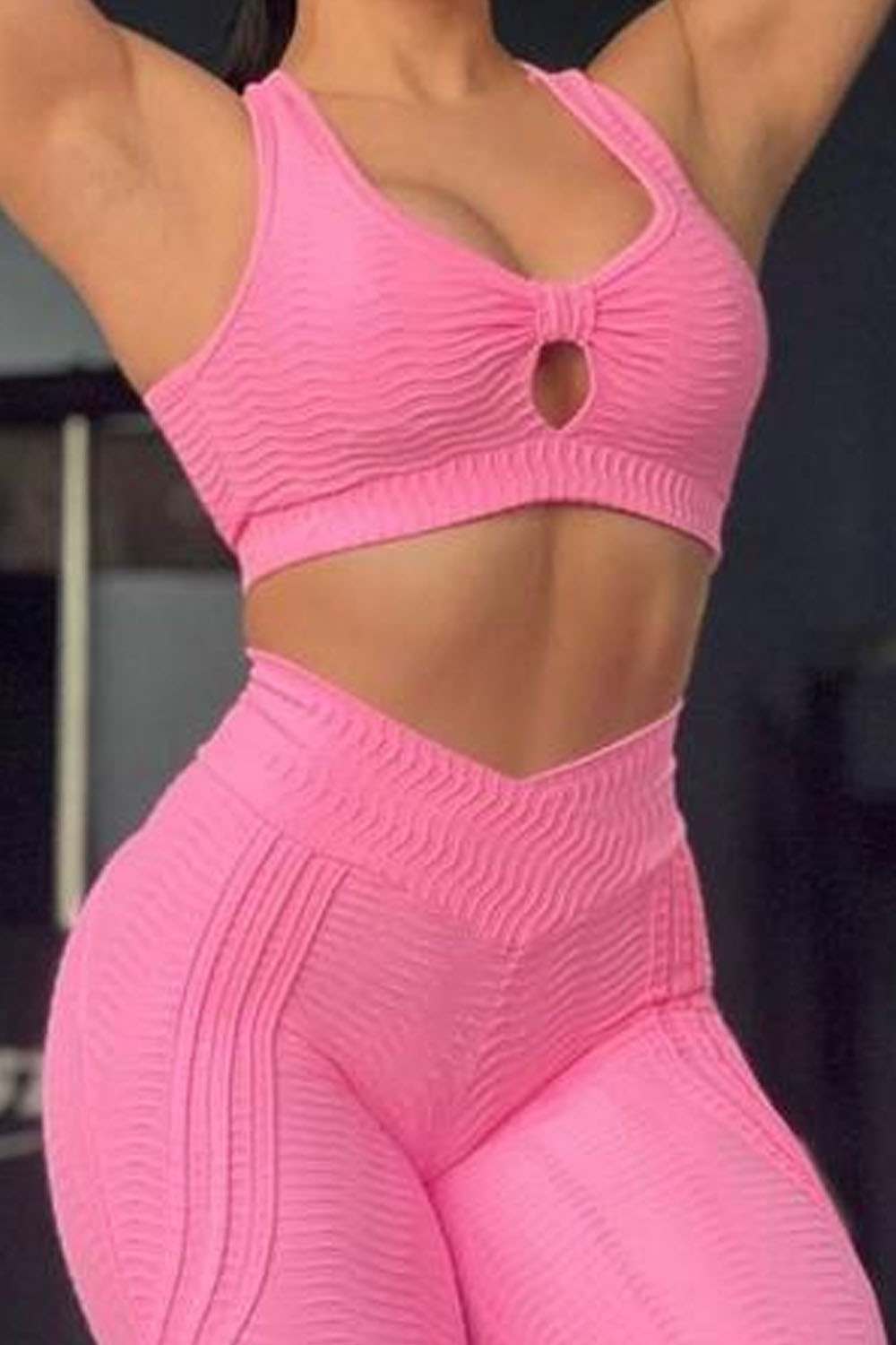 The "Floral Relief" set is the ideal choice for women who want to stand out with encouragement in their workout sessions. Whether it's pilates, yoga, running or the gym, this pink set is a perfect combination of fashion and functionality. Lose yourself in the soft feel of the fabric, embrace the beauty of the embossed detailing, and feel confident and empowered in your every move.
