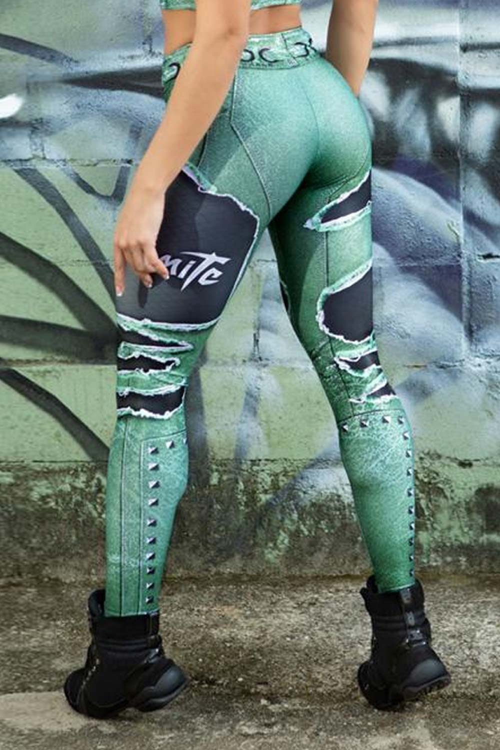 Features: Legging made in fabric that imitates destroyed jeans. It has Dyamite written on the side. Modeling adjusted to the body, valuing the curves.