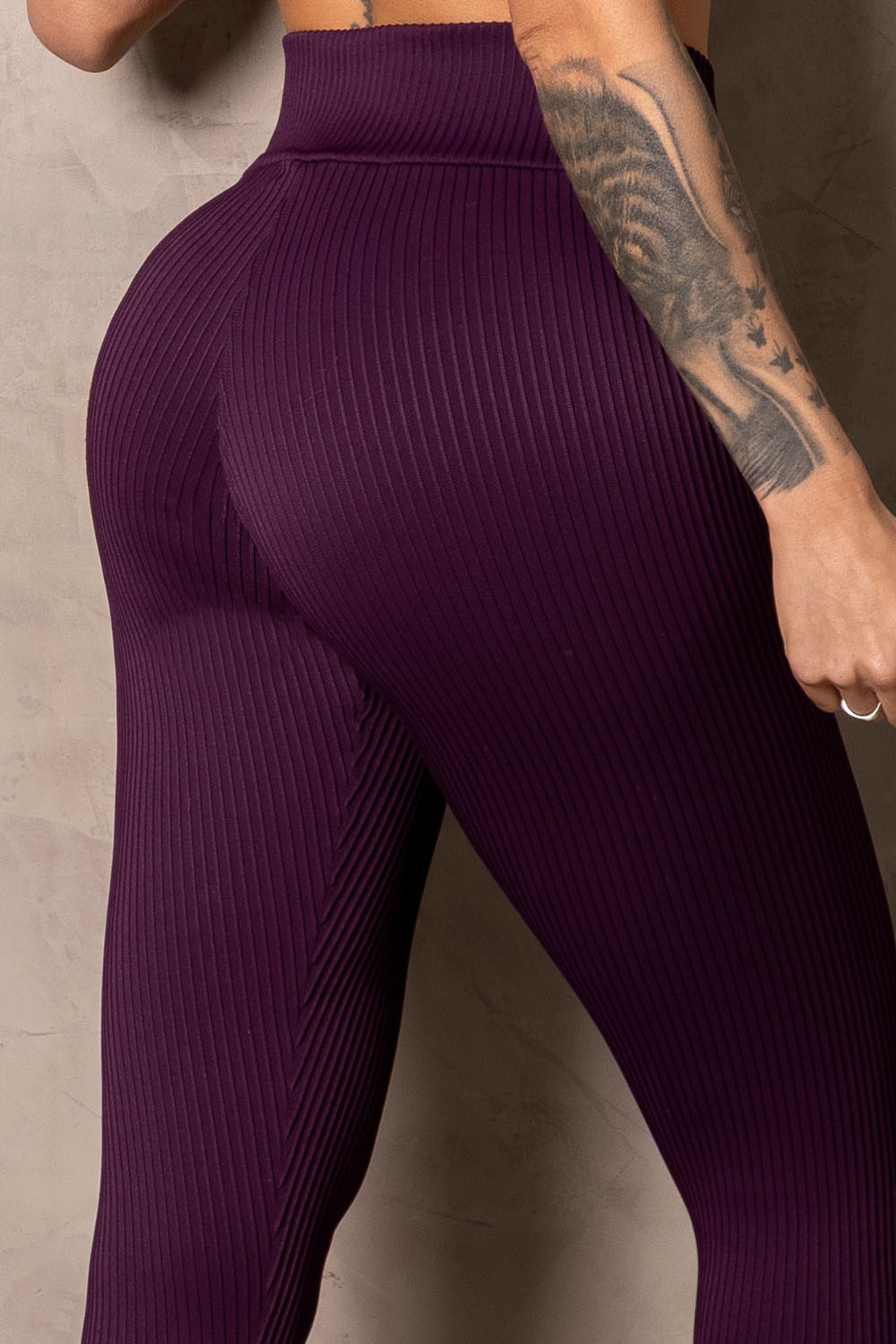 Purple leggings with high-stretch ribbed fabric, a crossover waistband that accentuates the waist, and a curve-hugging fit with comfort and support.