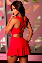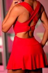 Women's romper with a contemporary and elegant look, made from high-performance stretch fabric that perfectly adapts to the body. Features a front cutout that flatters the silhouette, crossed straps at the back for greater support, and a skort that offers comfort and mobility. Perfect for creating sporty or casual looks with style and versatility.