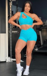 The "Azul Cruzado" set is perfect for women who want to stand out at the gym, yoga, pilates or any sporting activity with a modern and sophisticated look.