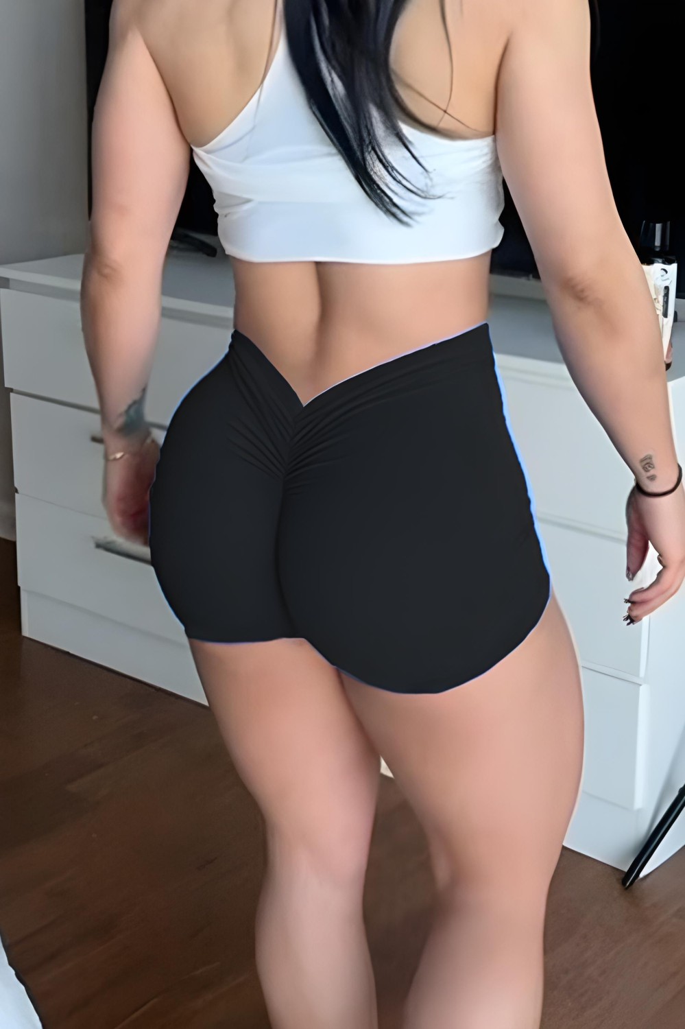 Features: Flexible, malleable, black high-waisted shorts. Has a butt lifter.