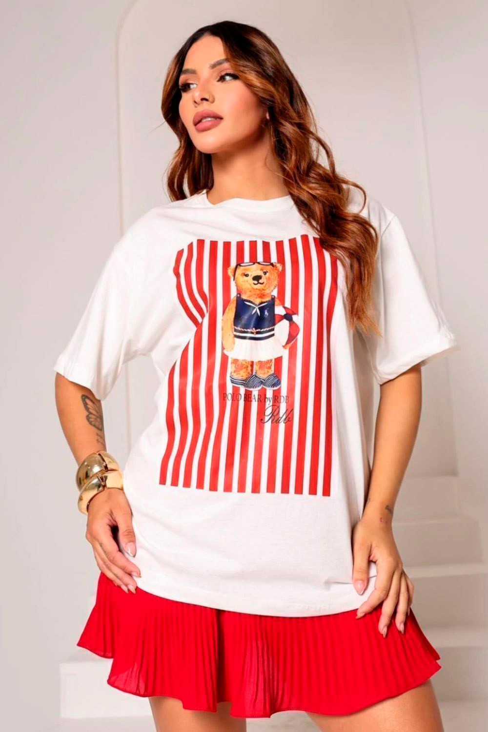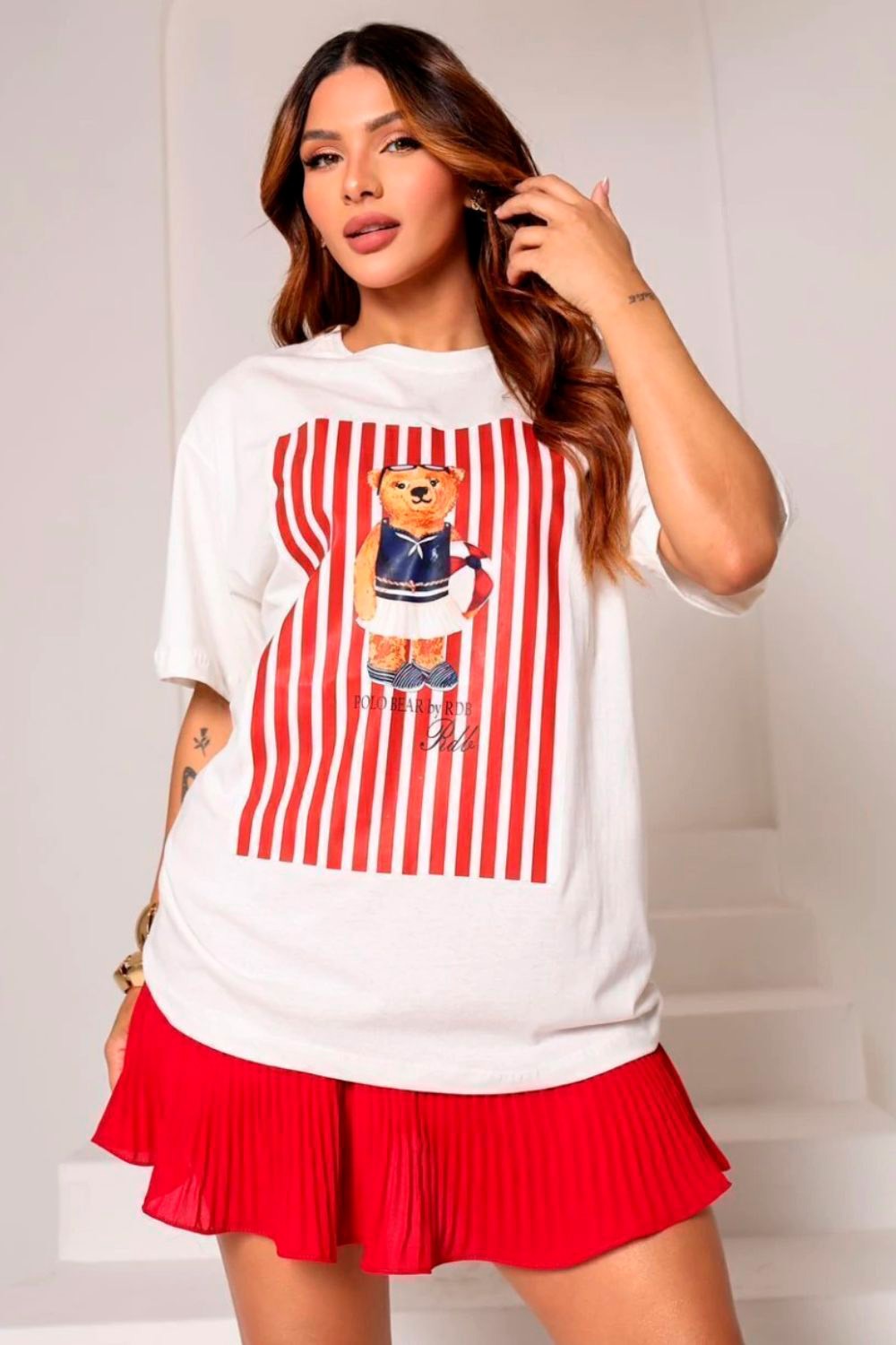 Introducing the Teddy Stripes off-white T-Shirt, a piece that combines comfort and fun style.
