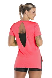 Fitness T-shirt made of super light and sporty fabric, allowing perspiration. The back with oval opening adds an extra and refreshing charm to the look. The front is plain with small slits on the sides, this is a versatile piece for any weather, being an essential in your wardrobe.
