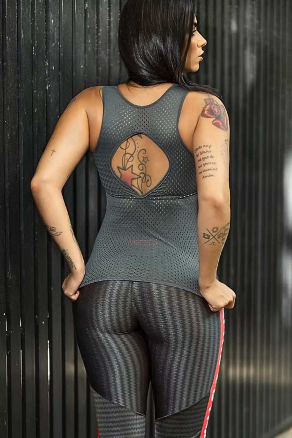 This workout top combines breathable fabric with a sophisticated design. The openwork detail on the back not only adds a unique style element, but also promotes ventilation during your workout. The fitted cut enhances the figure, while the material offers comfort and freedom of movement for any type of exercise.