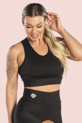 Fitness top in black with medium straps that provide good support to the bust and a sporty touch to the look. The bottom of the top is like a tight band around the body, in elastic fabric that adjusts to the curves of the body and has a racerback style.