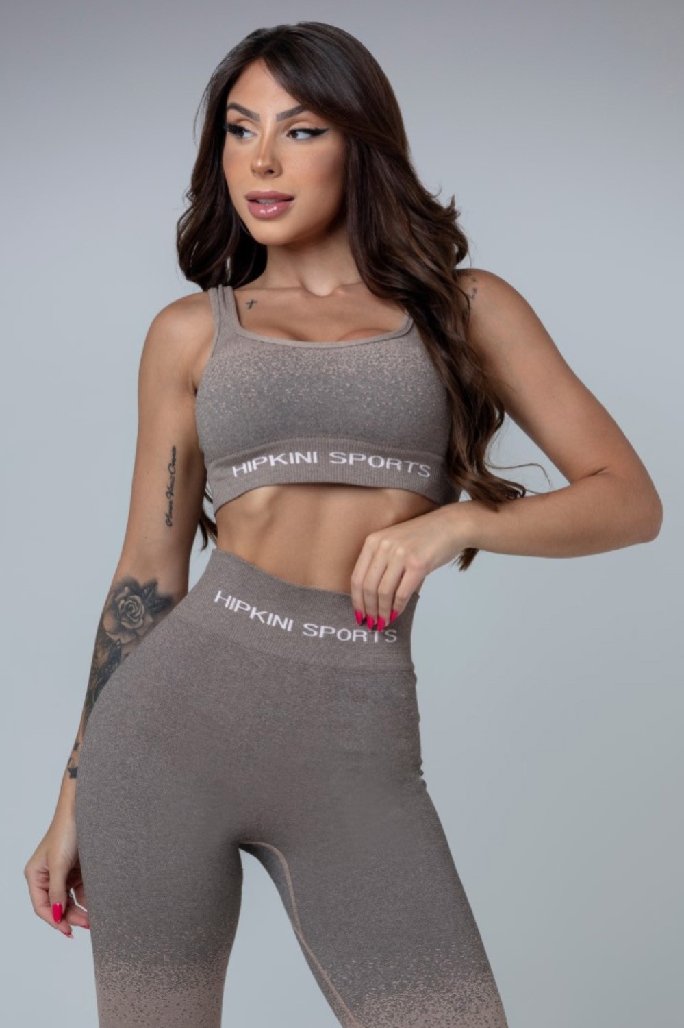 Seamless brown fitness top, minimal seams and maximum comfort, with a body-hugging fit. Thin straps provide support and style. Finished with HIPKINI brand writing on the bust. Ideal for high-performance workouts and casual sportswear.