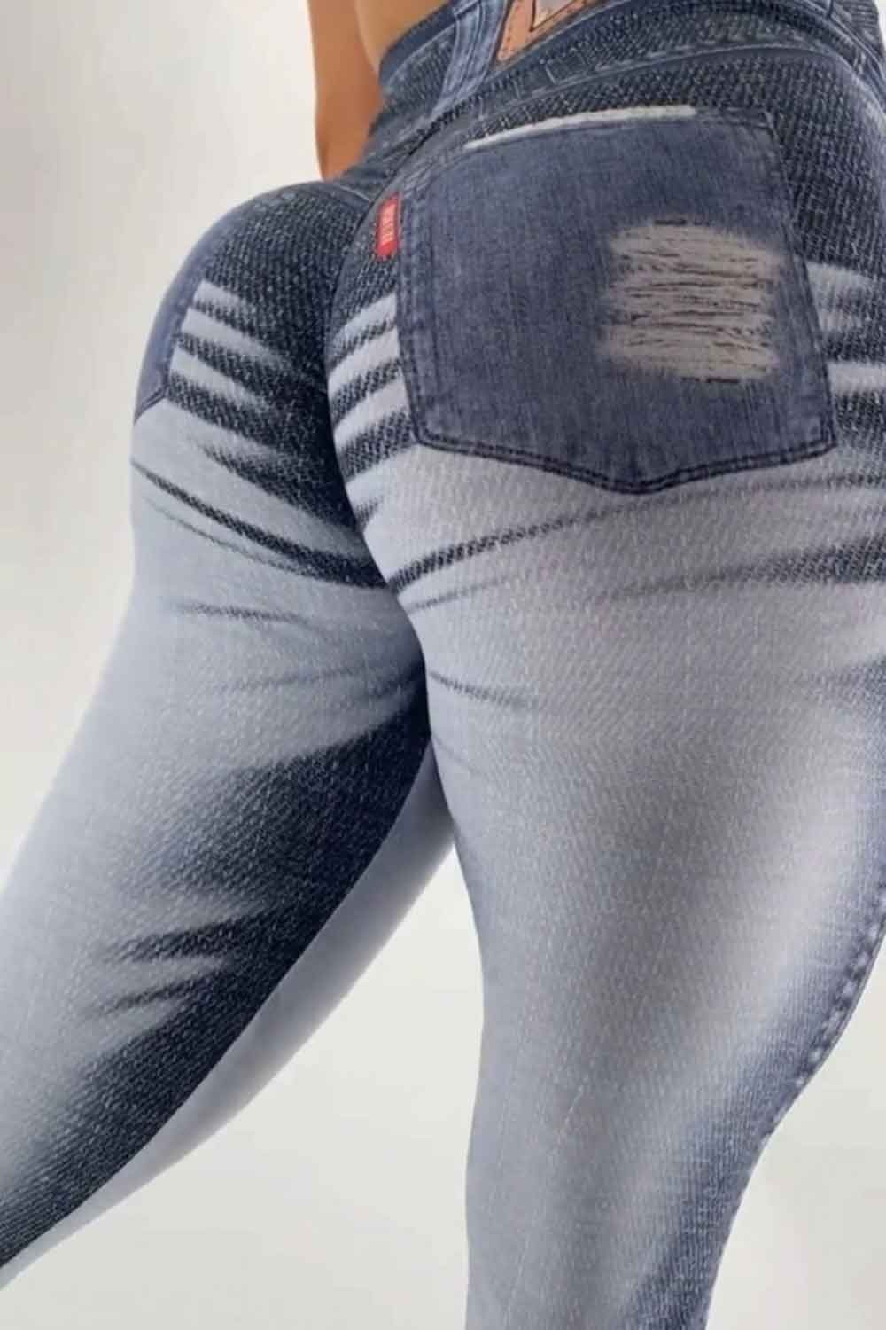 Fake Jeans Stained Leggings